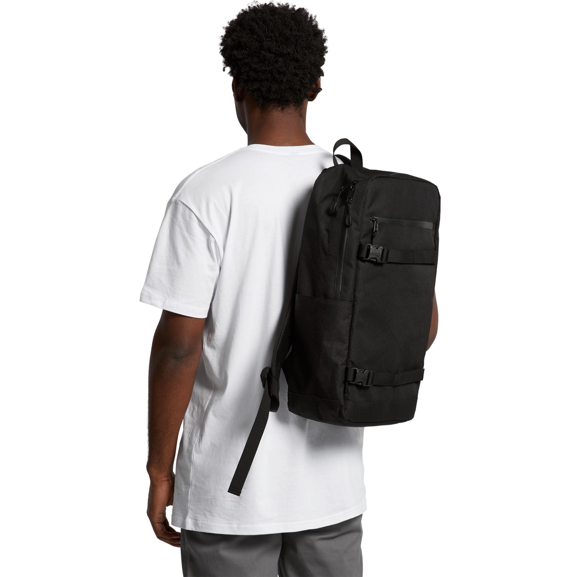 Say hello to the Recycled Strap Backpack, your new go-to for everyday adventures. This heavyweight, 10.6 oz pack is not just durable but eco-friendly too. With a roomy main compartment, an external YKK zip pocket, and an internal padded laptop sleeve, it's got all the space and organization you need. The board straps on the front and a nifty internal metal mesh window with a key chain attachment keep everything in place. Perfectly sized at L 19 x W 11 x H 6" with a 5.2-gallon capacity.